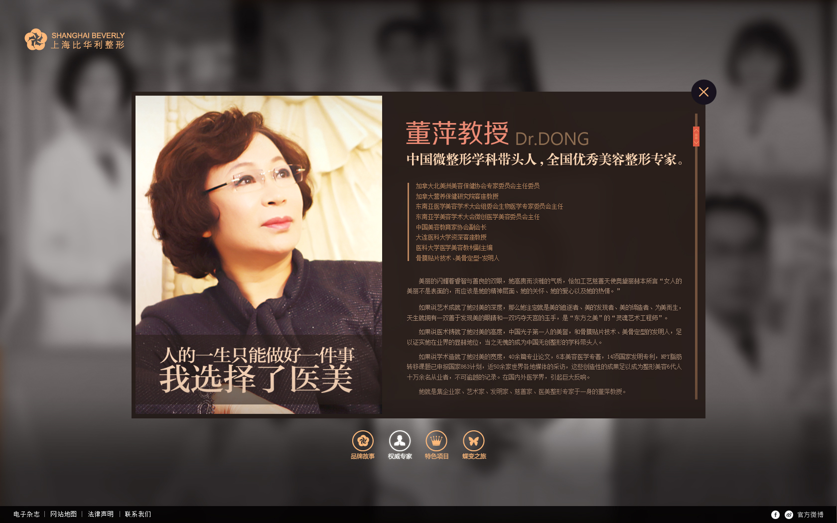 上海比華利醫療美容醫院創立于2001年,由中國私人整形第一人董萍教授與美國比華利整形醫院合作創立。美國比華利整形醫院坐落在美國加利福尼亞州洛杉磯市比華利山莊,舉世聞名的比華利山莊是全球富豪心目中的夢幻之地。它地處洛杉磯盆地邊緣的山坡上,其建筑物依比華利山而建,面臨一望無際的太平洋海面 ...